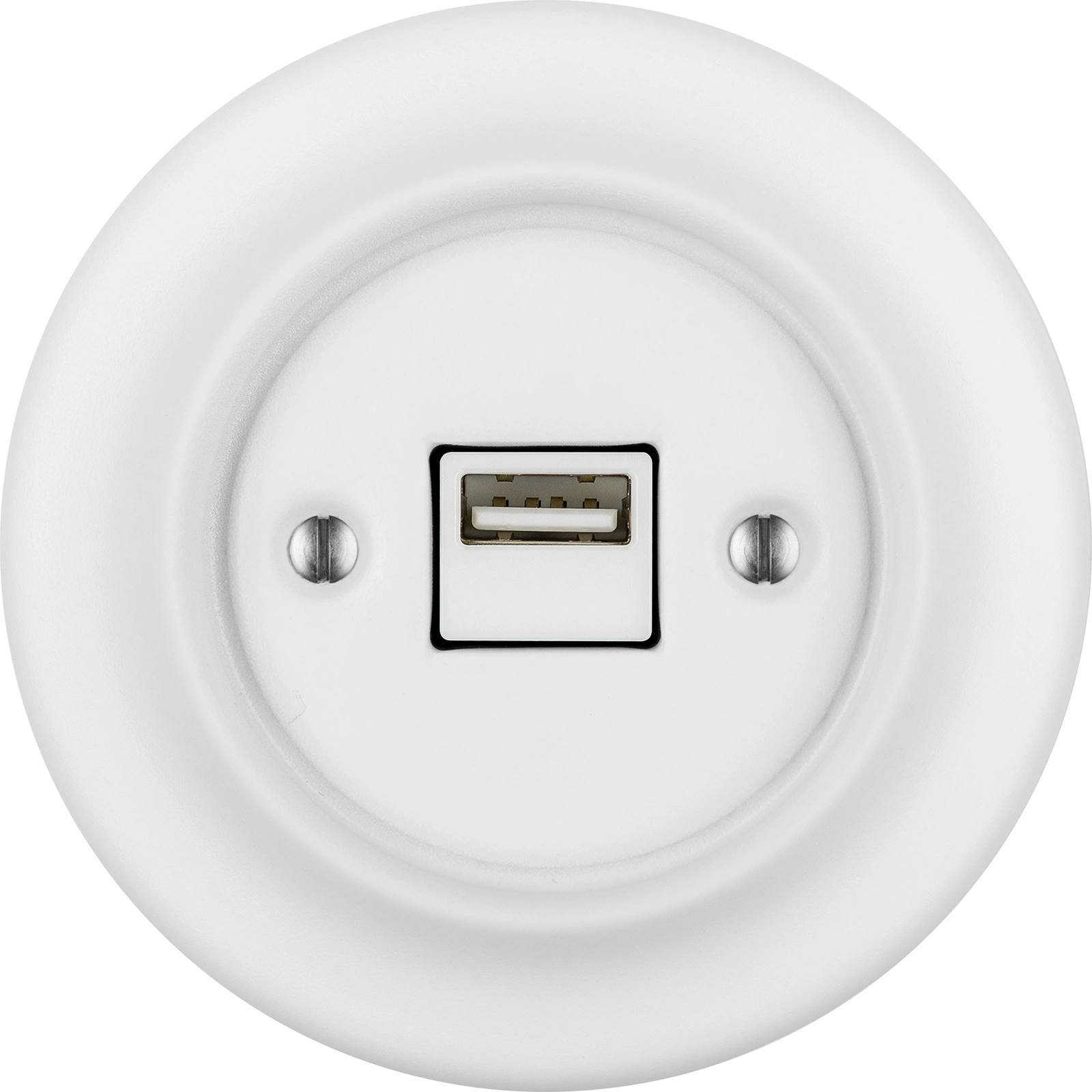 Розетка USB в нов дизайн с бяла матова повърхност. Прецизна ръчна изработка. Продуктът има висока устойчивост на износване поради много стабилно дълбоко оцветяване на повърхността. Изработен от истински порцелан. CE сертификат за съответствие. Декоративно покритие. 50 години гаранция!
