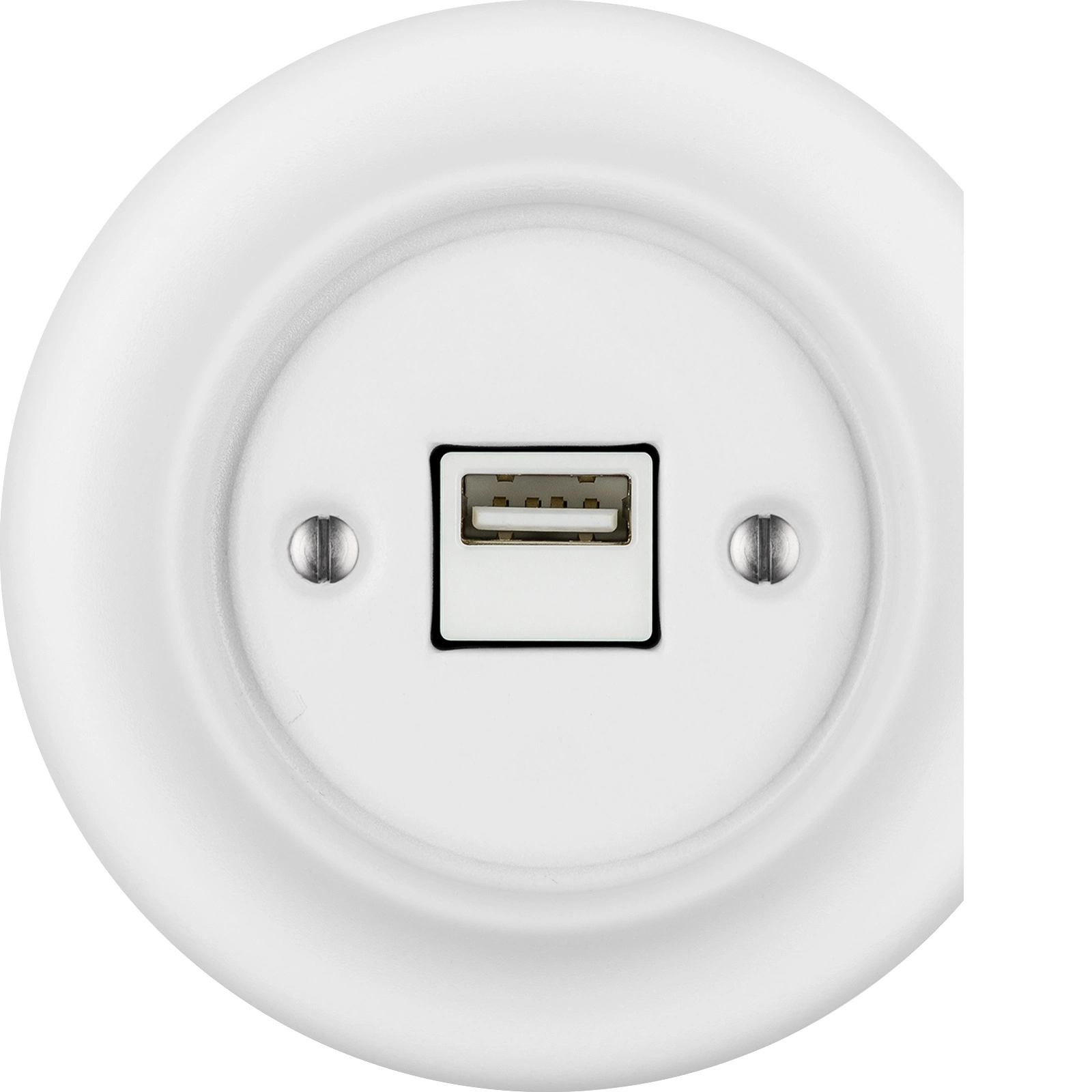 Порцеланово USB зарядно. С остъклена повърхност. Матово бяло на цвят. С високо устойчива повърхност и трайност на цвета. CE Сертификат за съответствие. Декоративен капак. 50 години гаранция!
