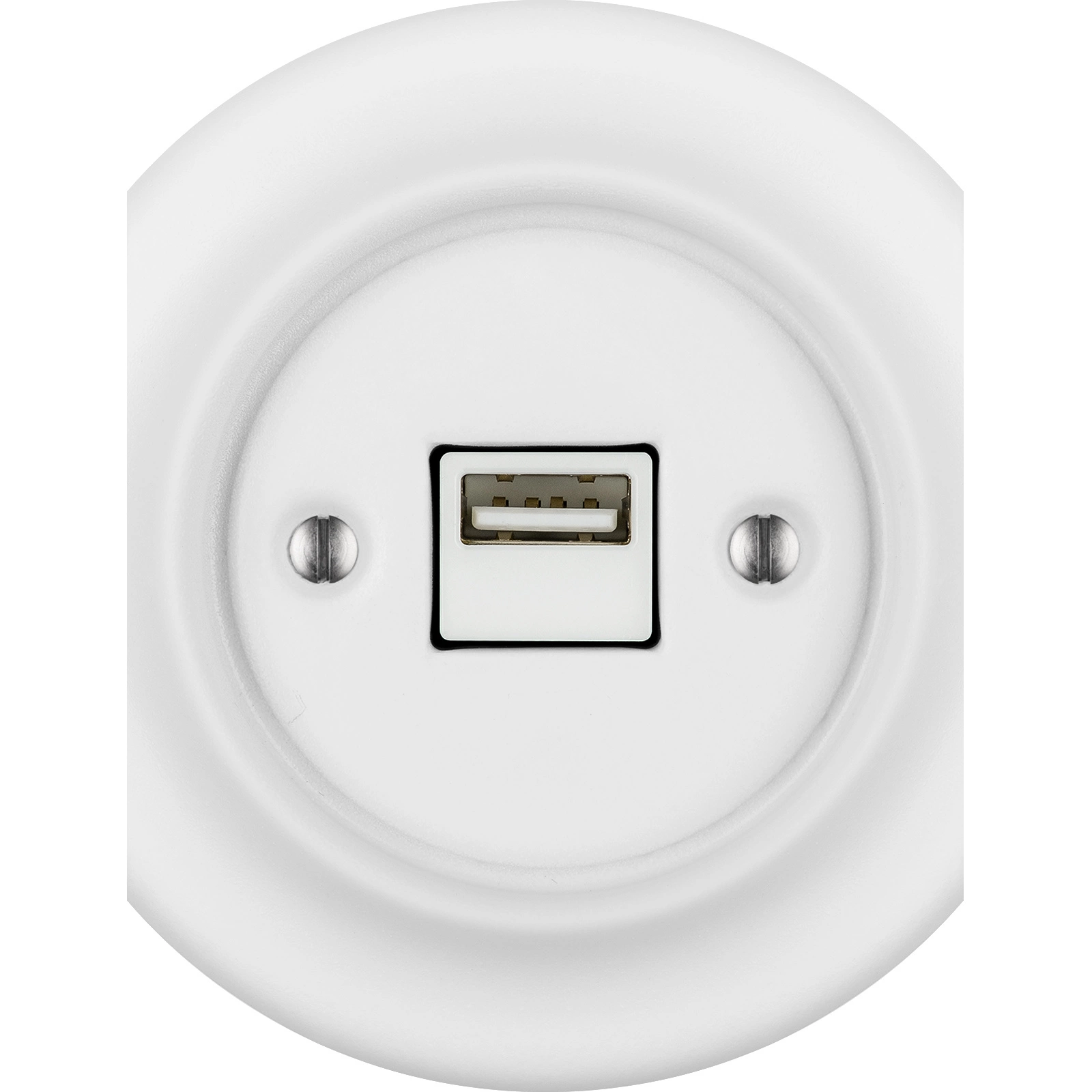Порцеланово USB зарядно. С остъклена повърхност. Матово бяло на цвят. С високо устойчива повърхност и трайност на цвета. CE Сертификат за съответствие. Декоративен капак. 50 години гаранция!