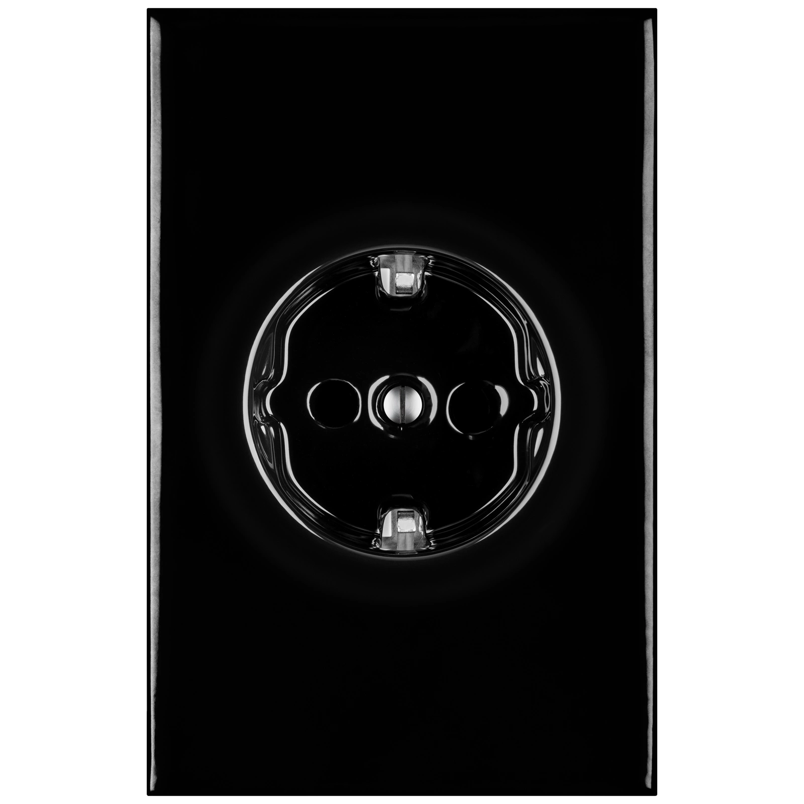 Модерен щепсел, вдъхновен от ретро дизайн, с глазирана повърхност. В лъскаво черно. Високо устойчив срещу износване и прах. Изработен чрез съвършена ръчна работа. Дълбочинно оцветен. Порцеланово изделие. CE Сертификат за съответствие. Декоративен капак